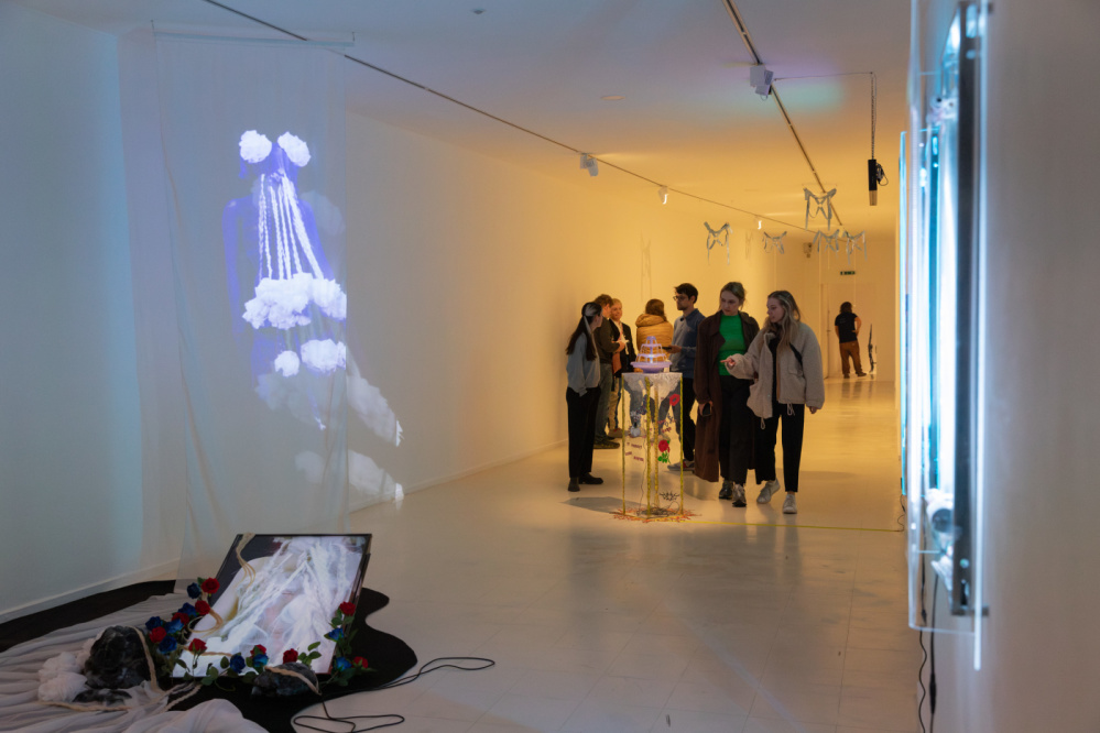 “Wir sind Künstler*innen, Freund*innen und vertraute Gossips, die sich mit persönlichen Hintergründen und Erfahrungen, Körperlichkeiten und Blickpunkten auseinandersetzen. Im kollektiven Widerwillen, sich festgefahrenen Denkmustern zu fügen, suchen wir nach diversen Gegenpositionen, die uns den Kenntnissen vergessener Welten näher bringen. Wir laden dazu ein, unsere (Ver-)Sammlungen mitzuerleben und in schwer greifbare Materien einzutauchen.”