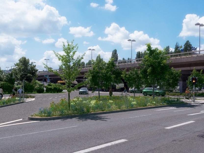 Der Streckenabschnitt könnte jedoch für den Fuß- und Radverkehr, entsprechend den heutigen Anforderungen, funktional verbessert werden. Im Zuge des Gesamtvorhabens soll deshalb der Knotenpunkt unter der Westspange zu einem signalisierten Kreisverkehr umgebaut werden.