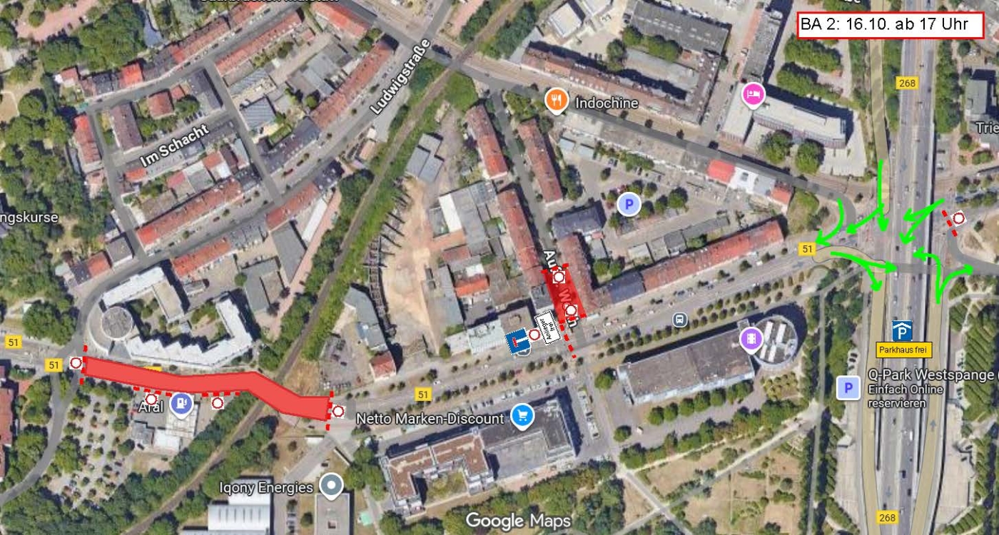 • Stadtauswärts: Weiterhin über die Trierer Straße in Richtung Ludwigskreisel möglich.