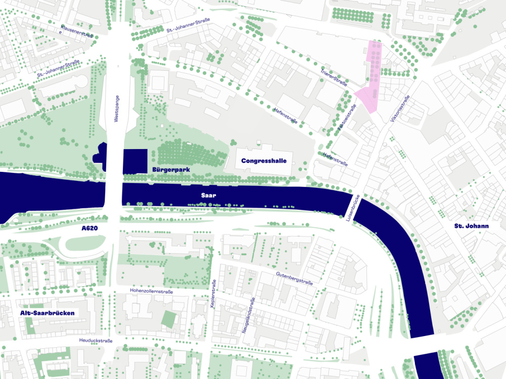 Die Reichsstraße ist die Hauptverbindung zwischen dem zentralen ÖPNV-Knoten (Hauptbahnhof/Saarbahn/Bus) und der Innenstadt sowie zur Faktoreistraße Richtung Congresshalle und Hafeninselpark.
