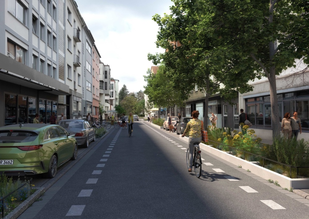 Im Zuge der Umgestaltung des Straßenraums zugunsten der Anwohnenden sowie der Verlängerung der Fahrradstraße Hohenzollernstraße soll der Radverkehr im Luisenviertel durch zusätzliche Fahrradinfrastruktur wie zum Beispiel Abstellplätze oder Service-Stationen weiter gestärkt werden. Durch die Anpassung der Einbahnregelungen werden zukünftig weniger Autos durch das Quartier fahren.