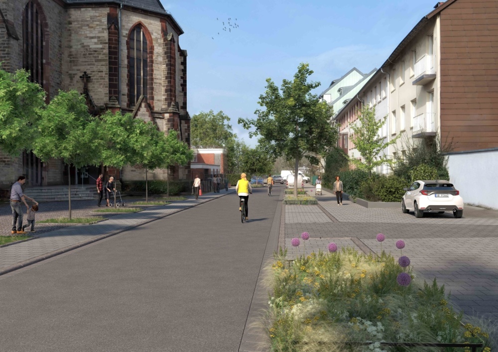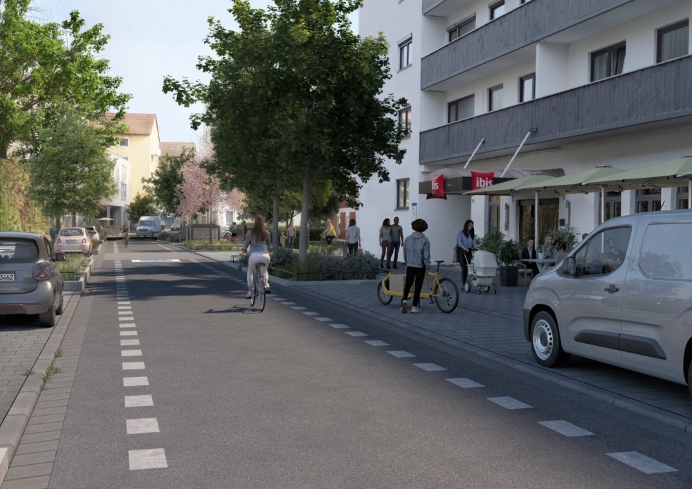 Neugestaltete Begegnungspunkte, mehr Grün im Straßenraum sowie neue Verkehrsführungen sorgen für mehr Aufenthaltsqualität.
