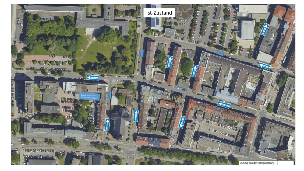 - Umdrehen der Einbahnstraßenrichtung der Gutenbergstraße ab der Mathias-Iven-Straße