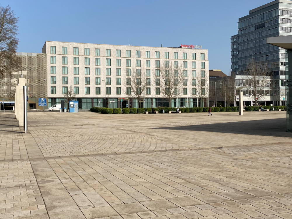 - Den Neubau ebenerdig durch eine Verbindungsbrücken mit dem Altbau verbinden und die Zuwegung vom Johannes-Hoffmann-Platz zum Hafeninselpark städtebaulich zu öffenen