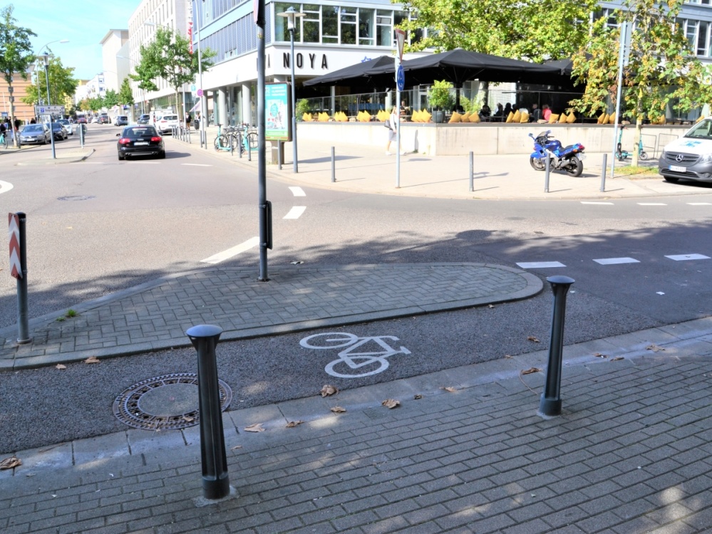Im Abschnitt zwischen Kohlwaagstraße und Viktoriastraße hingegen ist der Straßenraum deutlich schmaler. Für den Radverkehr gibt es in diesem Abschnitt keine eigene Infrastruktur.