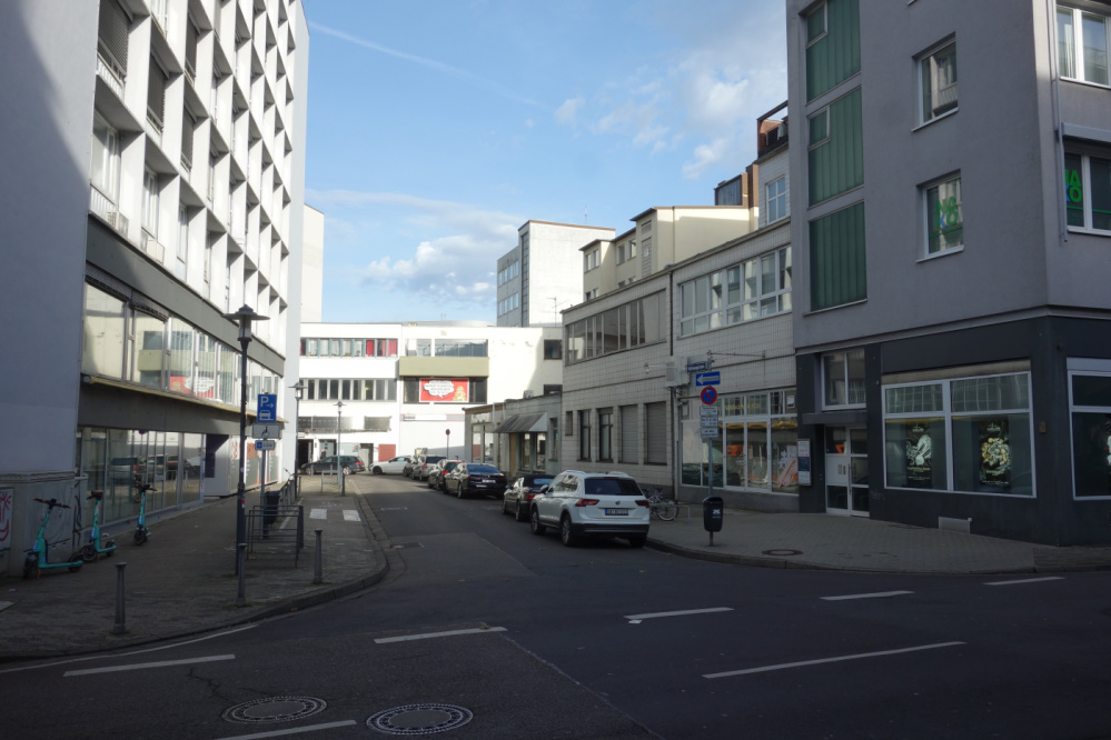 Insgesamt weist die Straßenraumgestaltung jedoch einen eher unbefriedigenden Zustand auf, der durch parkende Autos und technische Einrichtungen (wie Poller, Schranken und ähnliches) geprägt wird. Auch der Durchgang zur Viktoriastraße im Kurvenbereich wirkt nicht gerade einladend. Es herrscht ein Hinterhof-Charakter.