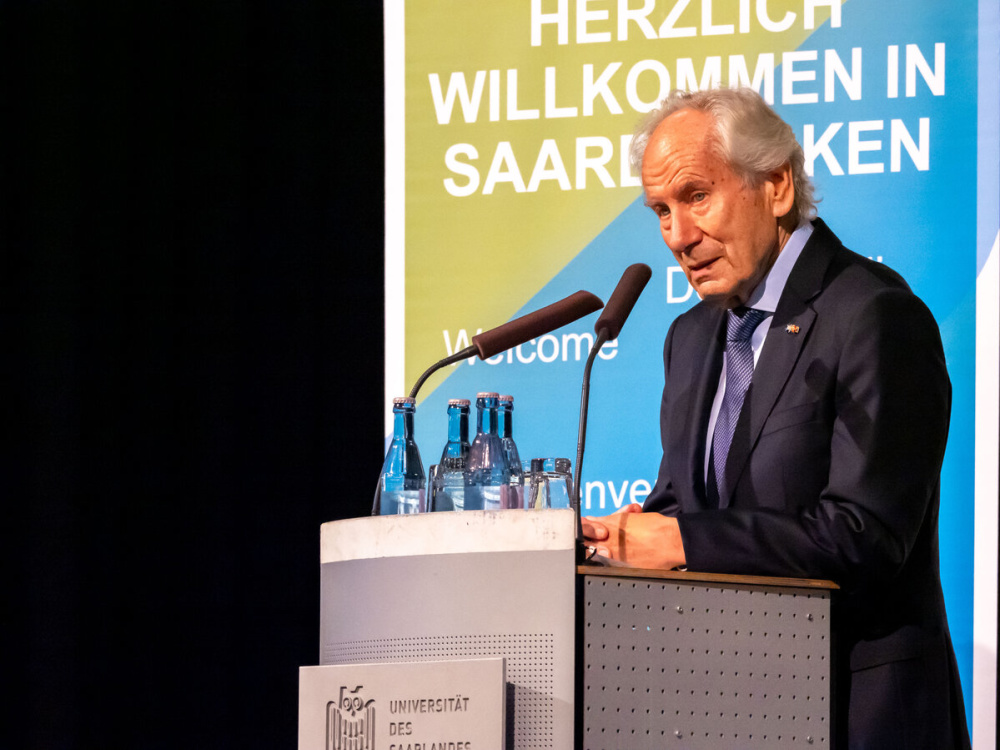 Professor Wolfgang Wahlster, Gründungsdirektor des Deutschen Forschungszentrums für Künstliche Intelligenz und ebenfalls Ehrenbürger der Landeshauptstadt Saarbrücken, hielt bei der Verleihung in der Universitäts-Aula ein Grußwort. „Als weltweit anerkannter Wirtschaftsinformatiker und gleichzeitig sehr erfolgreicher IT-Unternehmer ist Professor Scheer für viele junge IT-Talente ein strahlendes Vorbild, das sehr gesuchte Fachexperten auch aus dem Ausland nach Saarbrücken führt und so einen wesentlichen Beitrag zur Zukunftssicherung der Landeshauptstadt leistet.“