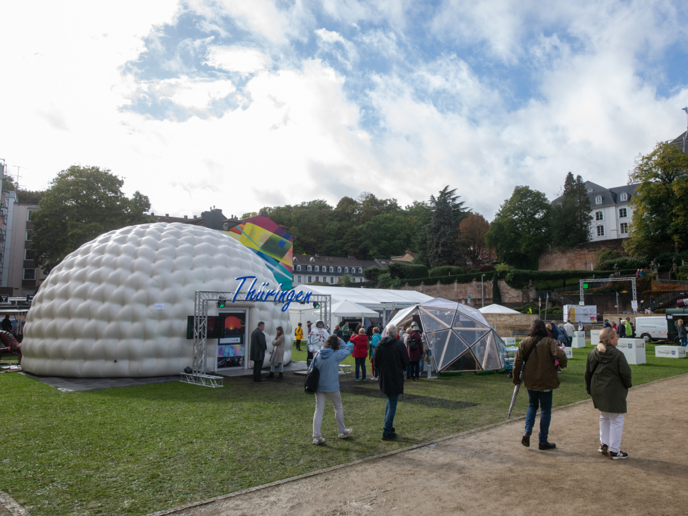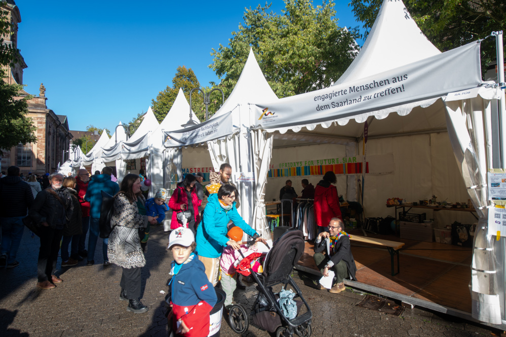 Unterhalb des Saarbrücker Schlosses entlang der Saar haben sich die Bundesländer während des Bürgerfestes vom 2. bis 4. Oktober zum Tag der Deutschen Einheit präsentiert.
