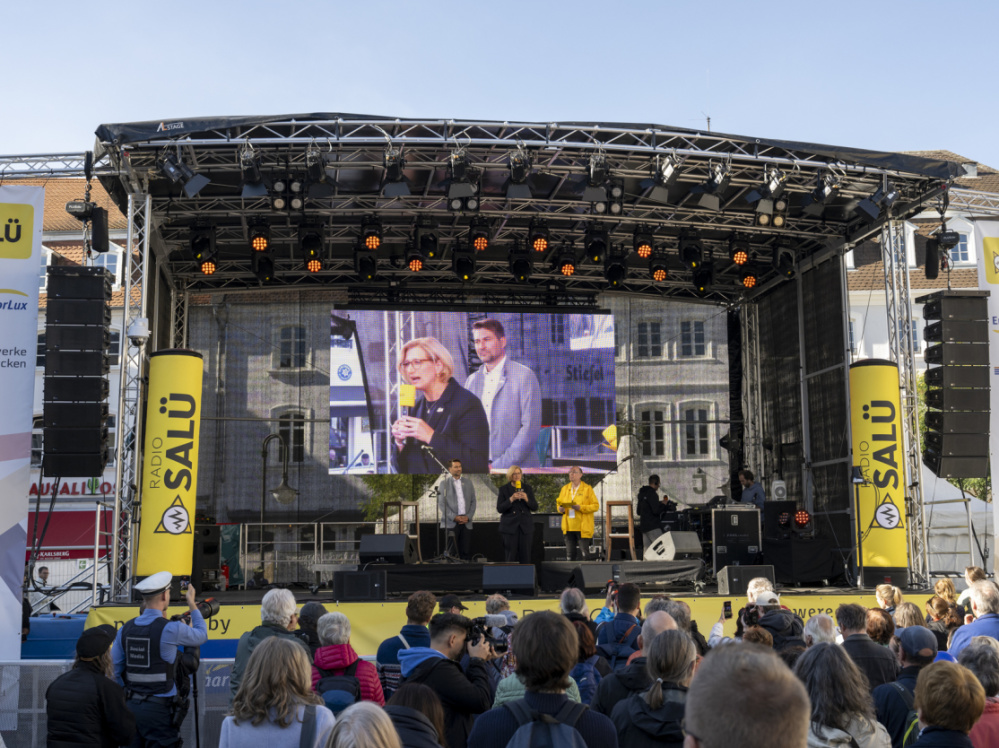 Saarbrückens Oberbürgermeister Uwe Conradt und die saarländische Ministerpräsidentin Anke Rehlinger haben das Bürgerfest gemeinsam eröffnet. Offizieller Start auf der Radio-Salü-Bühne am St. Johanner Markt war am 2. Oktober gegen 16 Uhr.