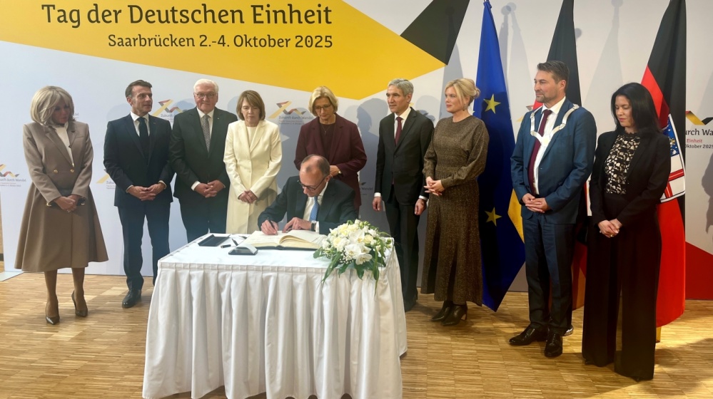 Eingetragen haben sich der französische Präsident Emmanuel Macron, Bundespräsident Frank-Walter Steinmeier, Bundestagspräsidentin Julia Klöckner, Bundeskanzler Friedrich Merz, Bundesrats- und Ministerpräsidentin Anke Rehlinger und Prof. Dr. Stephan Harbarth, Präsident des Bundesverfassungsgerichts.
