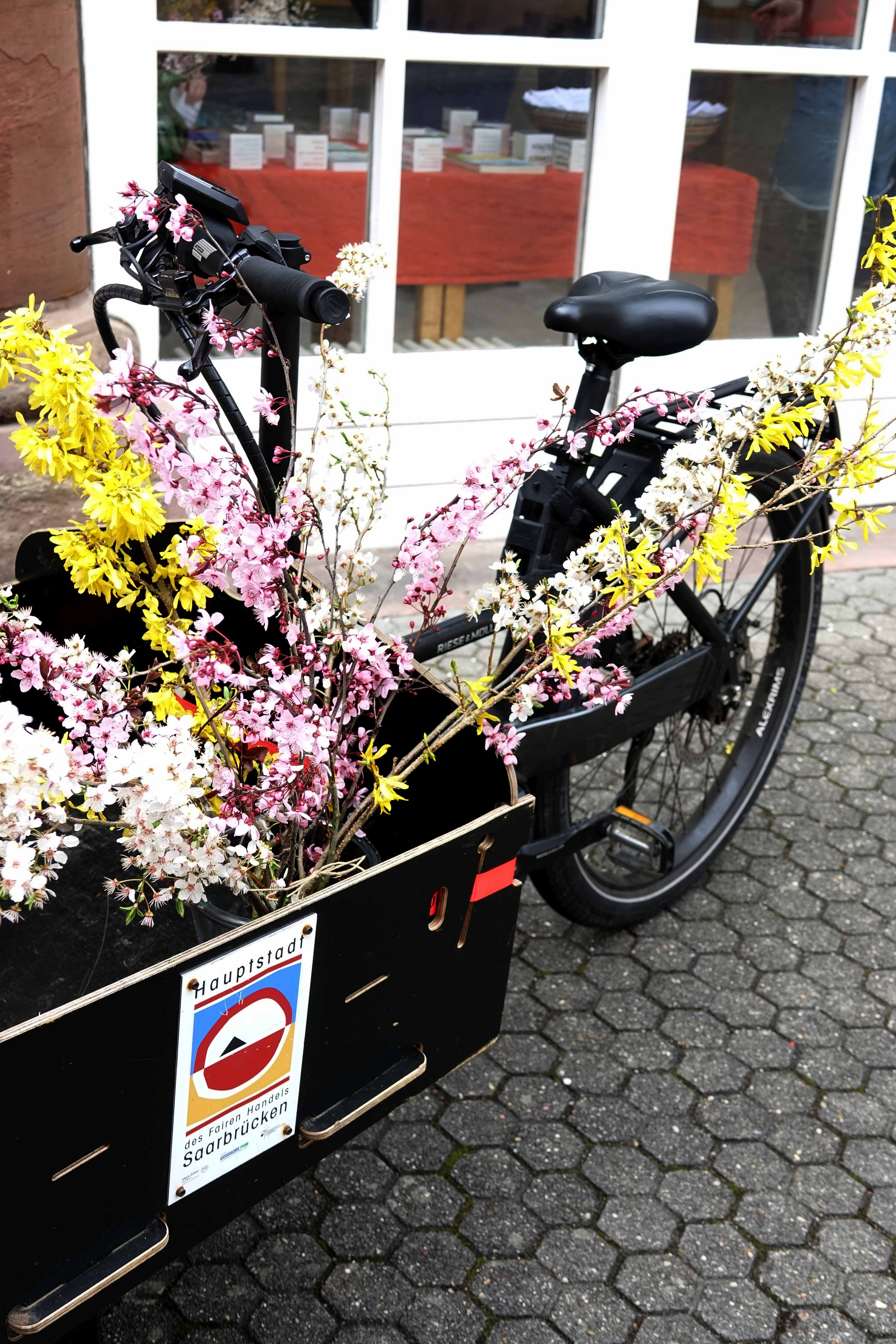 Ihr Lastenpedelec mit der Aufschrift „Hauptstadt des Fairen Handels“ hat die Landeshauptstadt 2017 als Geschenk von der Engagement Global gGmbH erhalten. Anlass war der gleichnamige Wettbewerb, in dem Saarbrücken als „Hauptstadt des Fairen Handels 2015-2017“ ausgezeichnet wurde.