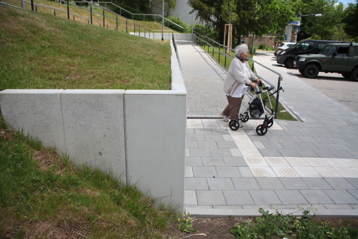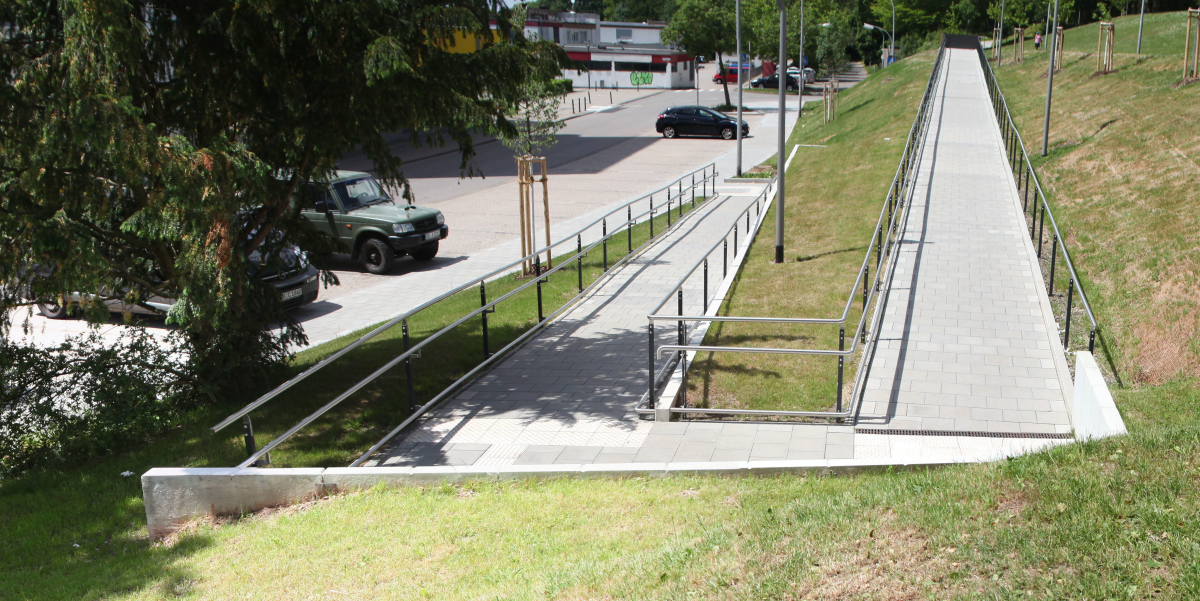 Um eine verbesserte Anbindung für Seniorinnen und Senioren sowie Menschen mit eingeschränkter Mobilität zu gewährleisten, hat die Landeshauptstadt Saarbrücken oberhalb des Brandenburger Platzes in Eschberg eine Rampe angelegt.