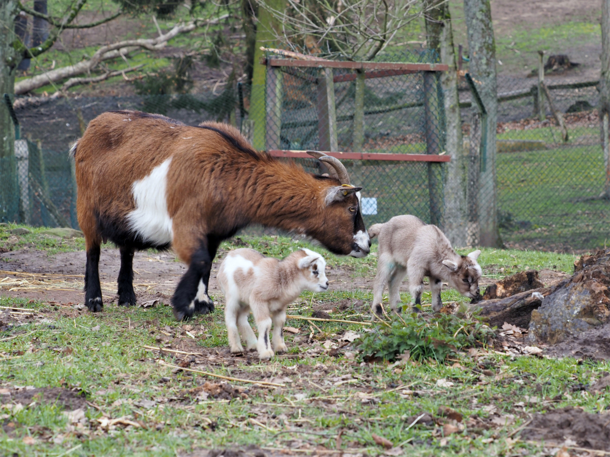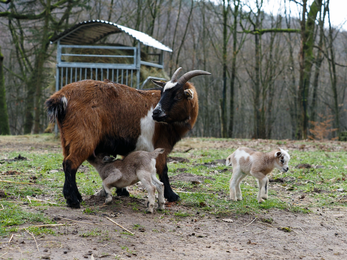 Am Dienstag, 16. März, kamen zwei gesunde Ziegenböckchen zur Welt. Einen Tag nach der Geburt begleiten sie bereits ihre Mutter bei Spaziergängen und erkunden die Umgebung. Einen großen Teil des Tages verbringen sie allerdings noch mit Schlafen.