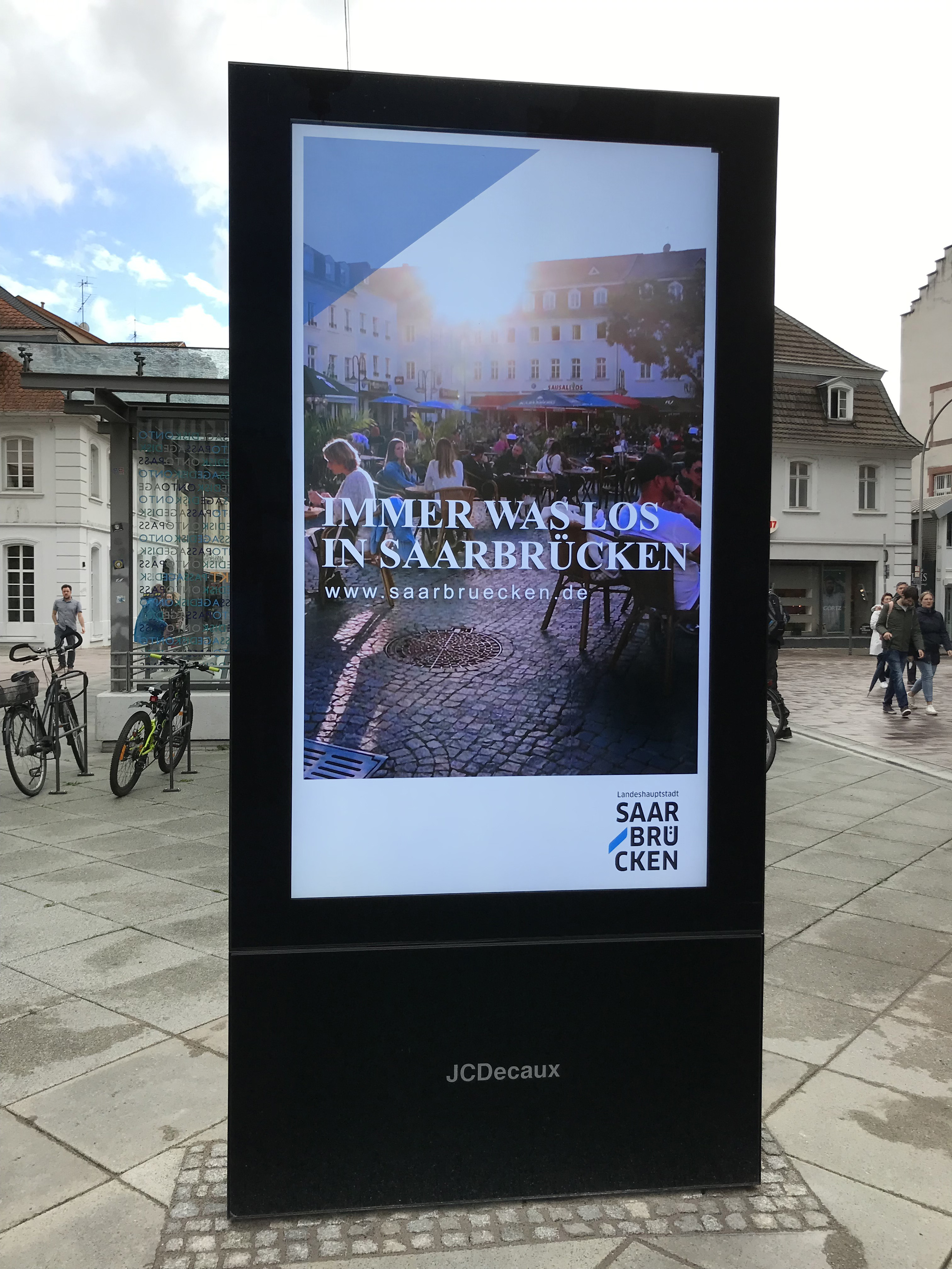 Insgesamt fünf Standorte in der Saarbrücker Innenstadt hat der Stadtmöblierer und Außenwerber Wall, vormals JCDecaux Deutschland, modernisiert und hier neue digitale Stadtinformationsanlagen anstelle der bisherigen Werbeträger errichtet.