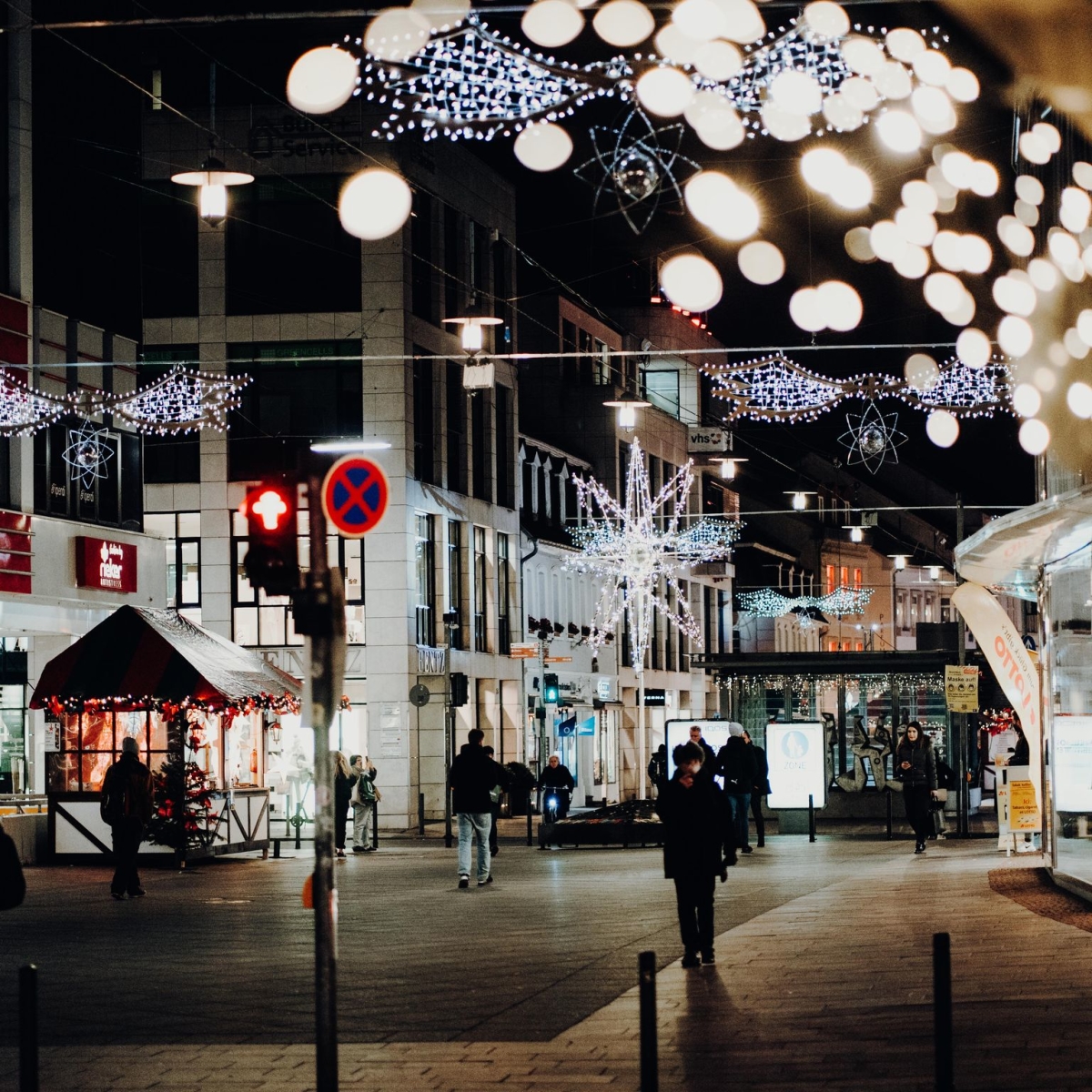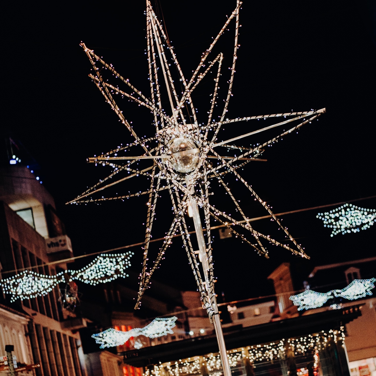 Zwischen Montag, 22. November, und Donnerstag, 23. Dezember, sorgt die Weihnachtsdekoration in der City für eine festliche Kulisse beim Geschenkeshopping und Schlendern. Sechs 4,50 Meter breite beleuchtete Flügel ergänzen die neue Beleuchtung aus dem vergangenen Jahr, der beleuchtete Innenstadtbereich wurde ausgeweitet.