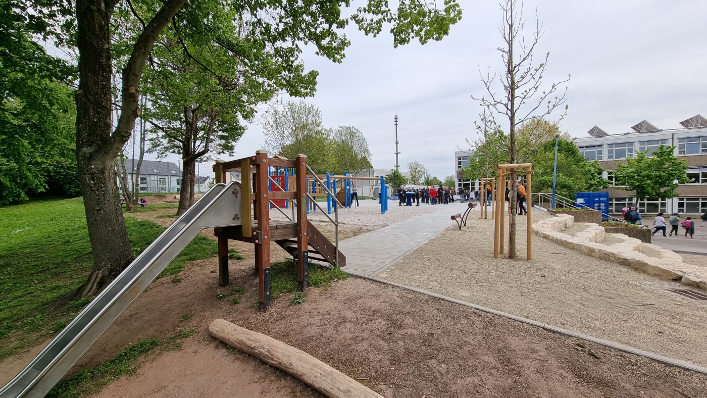 Baudezernent Patrick Berberich hat am Freitag, 29. April, an der Ganztagsgrundschule Füllengarten in Burbach offiziell den sanierten Schulhof eröffnet und ihn den Schülerinnen und Schülern übergeben.