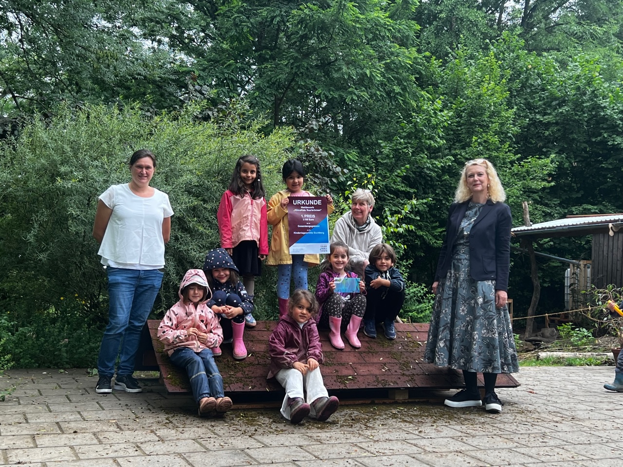 Die Kindertagesstätte Eschberg hat auch dieses Jahr wieder den ersten Platz erreicht und erhält dafür eine Gesamtprämie von 3.150 Euro. Sie hat das nachhaltige Projekt „Umwelterziehung - Müll“ eingebracht und überzeugte die Jury mit einem stimmigen, nachvollziehbaren Konzept und ihrem eindrucksvollem Gesamtengagement. Die Kinder haben in dem Projekt unter anderem gelernt, wie sich verschiedenste Materialien durch Naturmaterial ersetzen lassen.