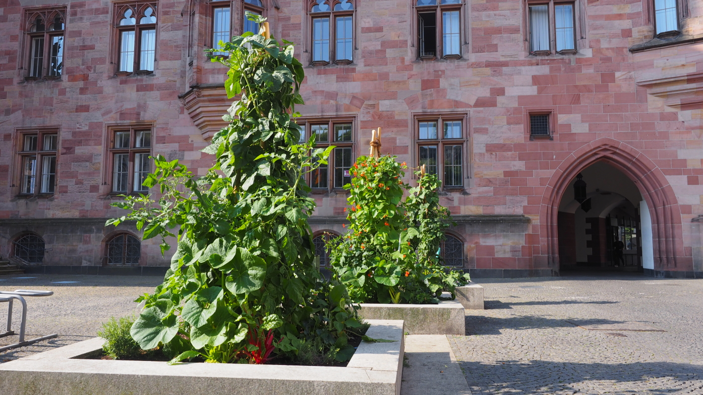 - zwei Pflanzflächen als „essbare Beete“ auf dem Hambacher Platz