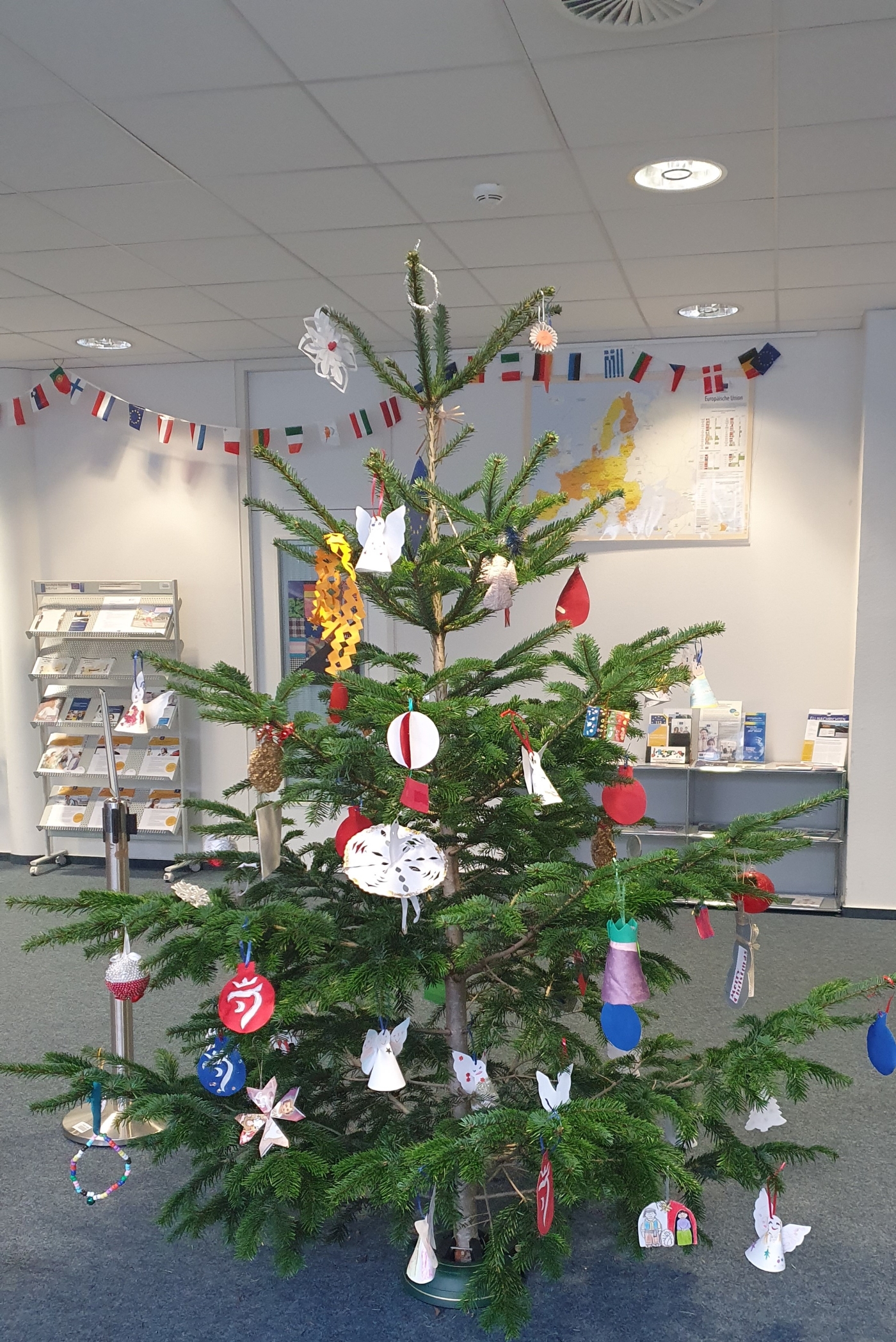 Das Zentrum EUROPE DIRECT Saarbrücken hat zur Vorweihnachtszeit einen europäischen Weihnachtsbaum gestaltet.