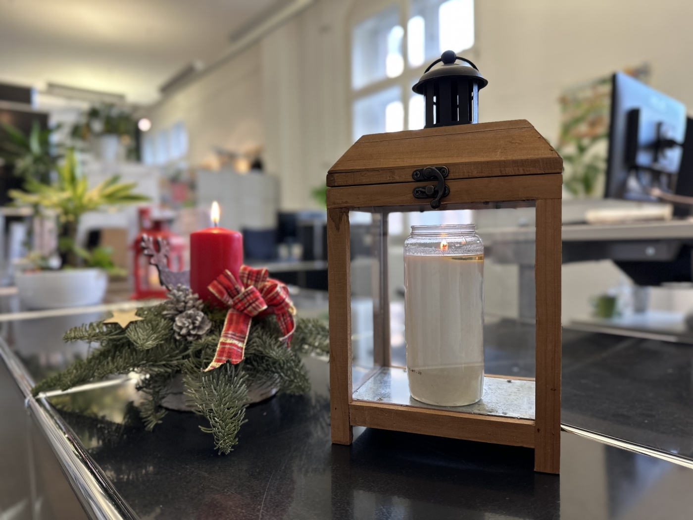 Friedenslicht auf der Infotheke im Rathaus St. Johann - LHS