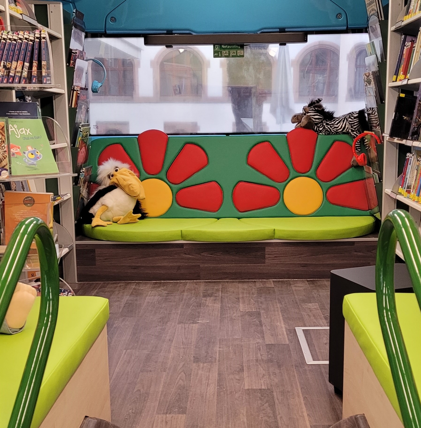 Schon ab Dezember kommt die neue Ausstattung des Bi-Busses mit seinem vielfältigen Programm an den teilnehmenden deutschen und französischen Grundschulen zum Einsatz. Dazu gehören das Vorlesen von Geschichten in beiden Sprachen, Bilderbuchkino, Handpuppentheater, bilinguale Spiele und vieles mehr. In der rollenden, grenzüberschreitenden Bibliothek können die Kinder außerdem Medien aus dem zweisprachigen Bestand ausleihen. Fachlich qualifizierte Mitarbeitende unterstützen bei der Suche nach geeigneten Titeln. Auch Lehrkräfte können Medien für Unterricht und Projektwochen ausleihen.
