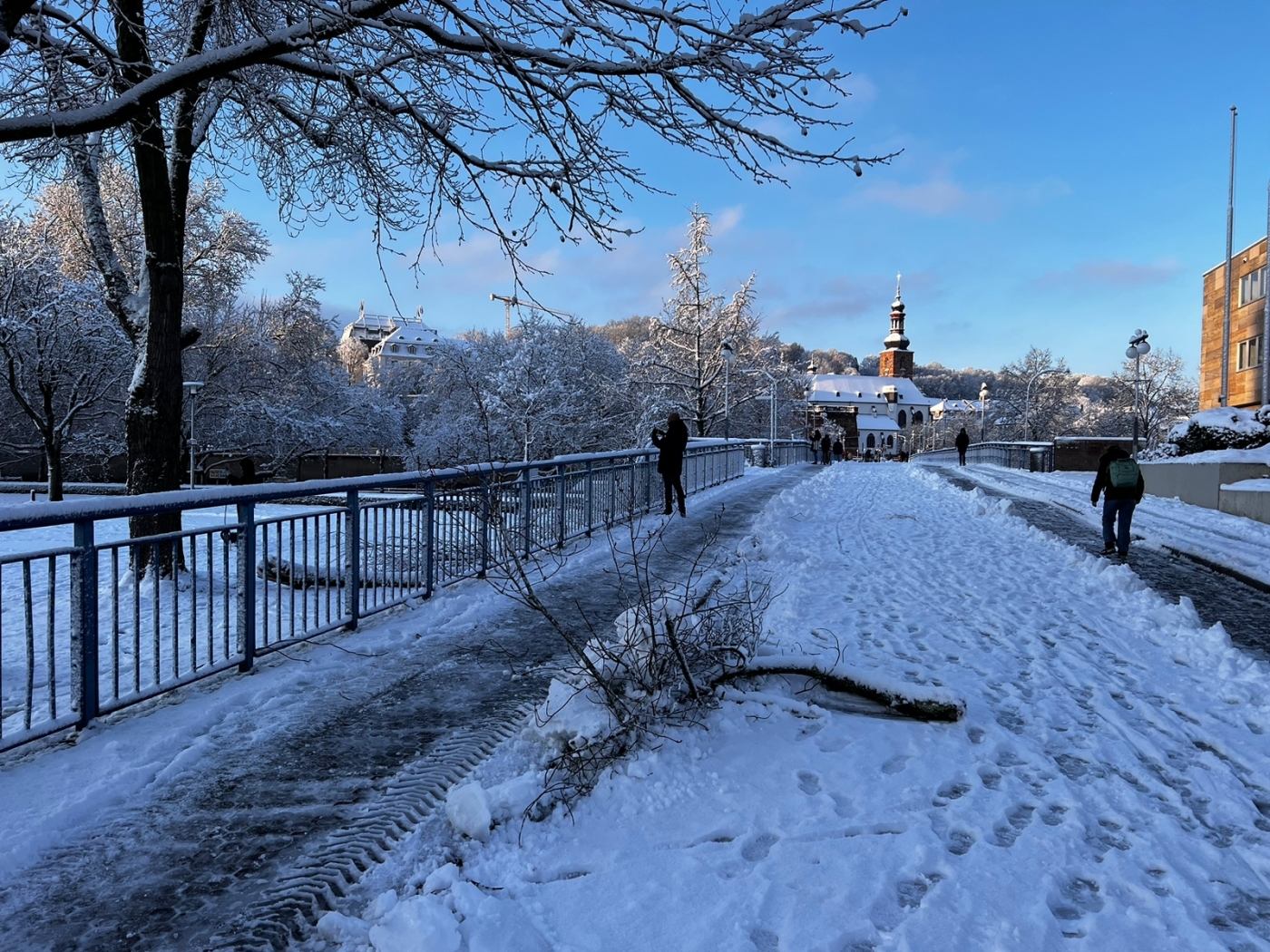 Die Kolleginnen und Kollegen des städtischen Straßenbau- und des Grünamtes sind heute im Schwerpunkt im Winterdienst im Einsatz und unterstützen den Zentralen Kommunalen Entsorgungsbetrieb (ZKE) beim Räumen von Straßen. Aufräum- und Sicherungsarbeiten in Parkanlagen- und Stadtwald sind daher nur sehr eingeschränkt möglich.