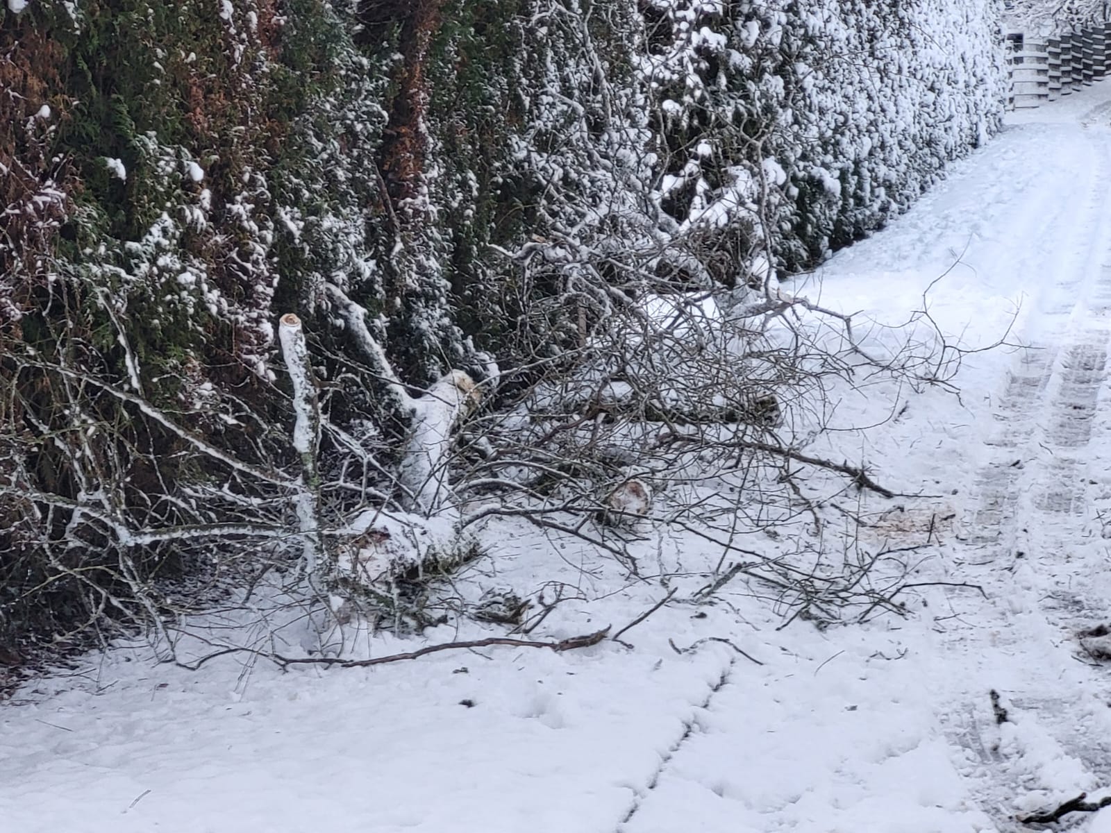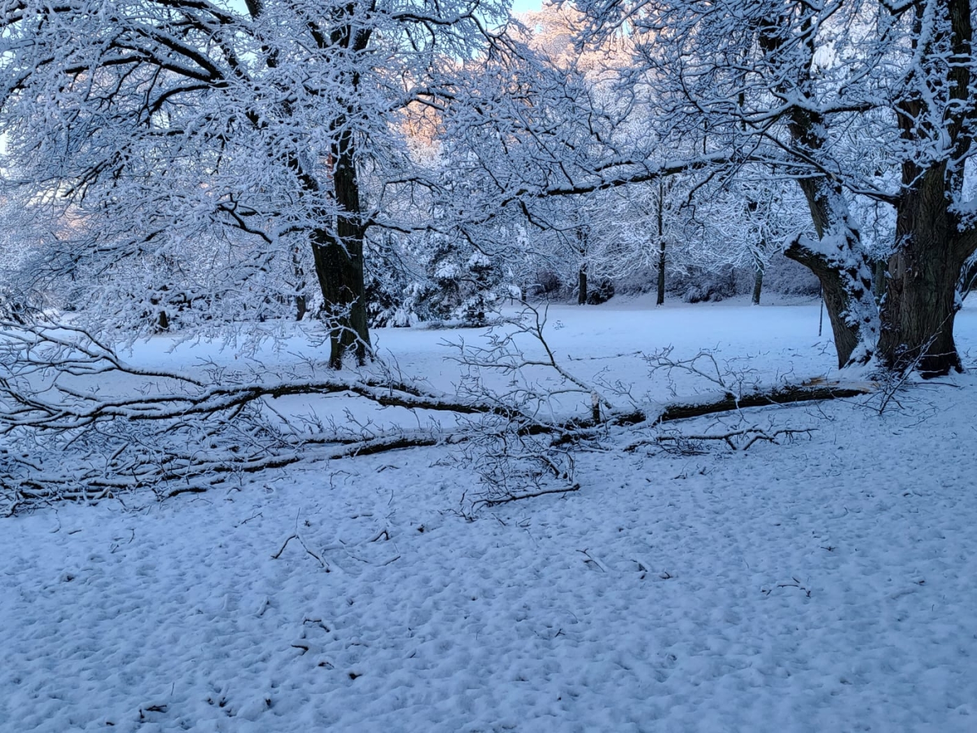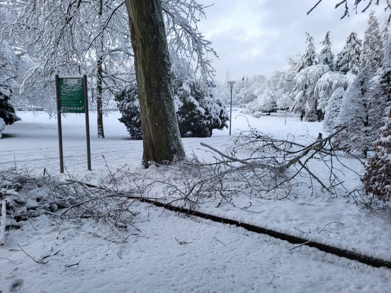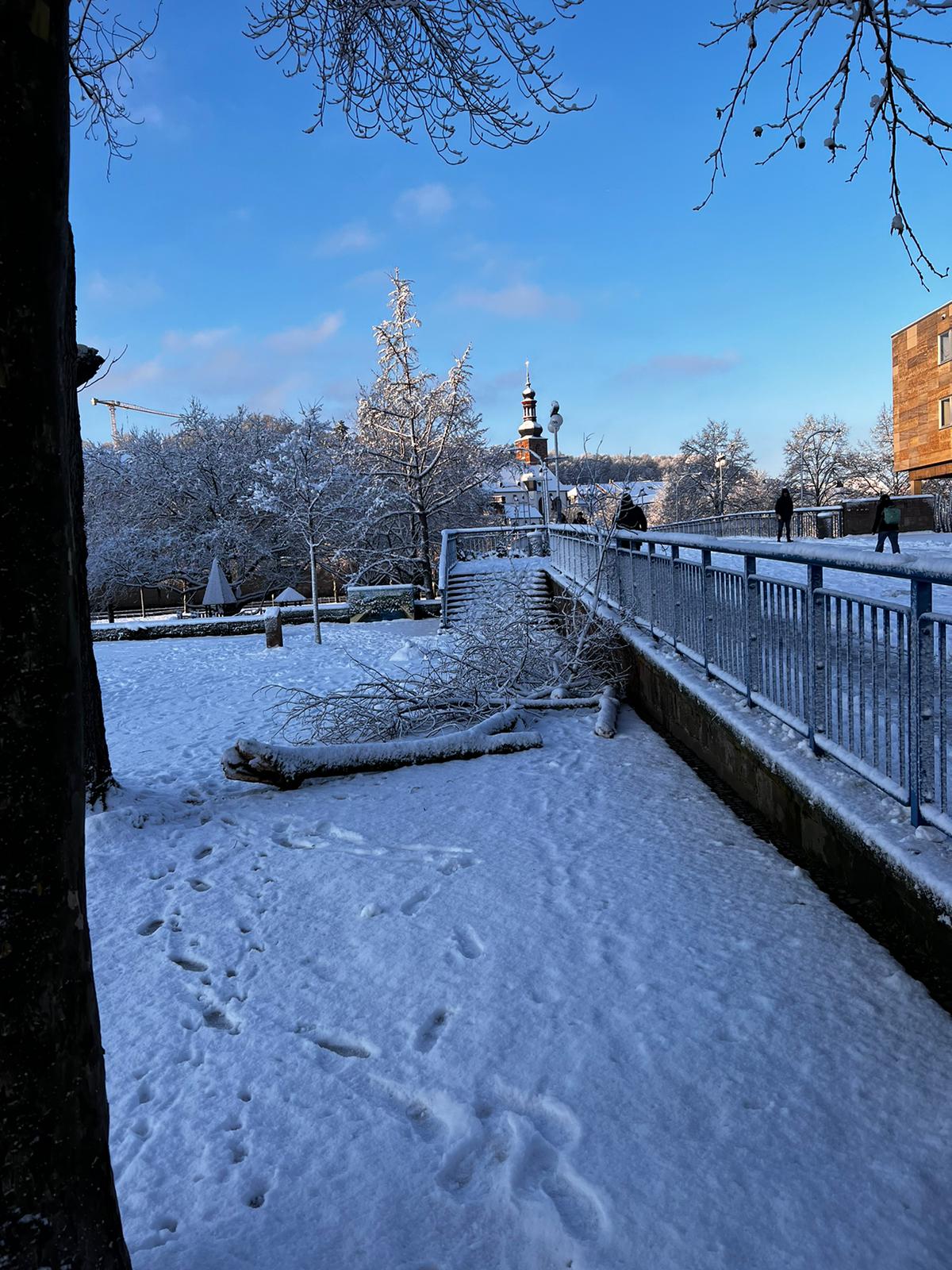 Aufgrund der hohen Schneelast kam es bereits im gesamten Stadtgebiet zu Astbrüchen, teilweise sind Bäume umgestürzt beziehungsweise deren Kronen abgebrochen.