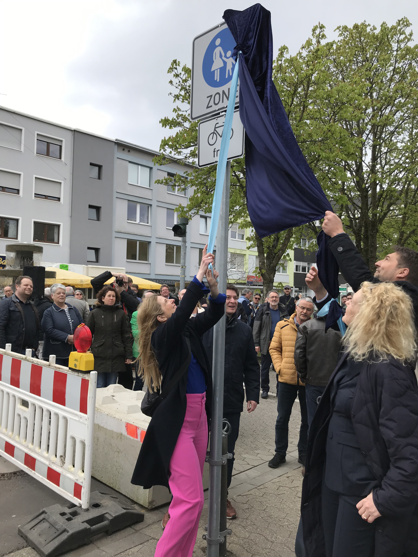 Oberbürgermeister Uwe Conradt hat die Straßen als neue Bereiche der erweiterten Fußgängerzone heute symbolisch eröffnet.