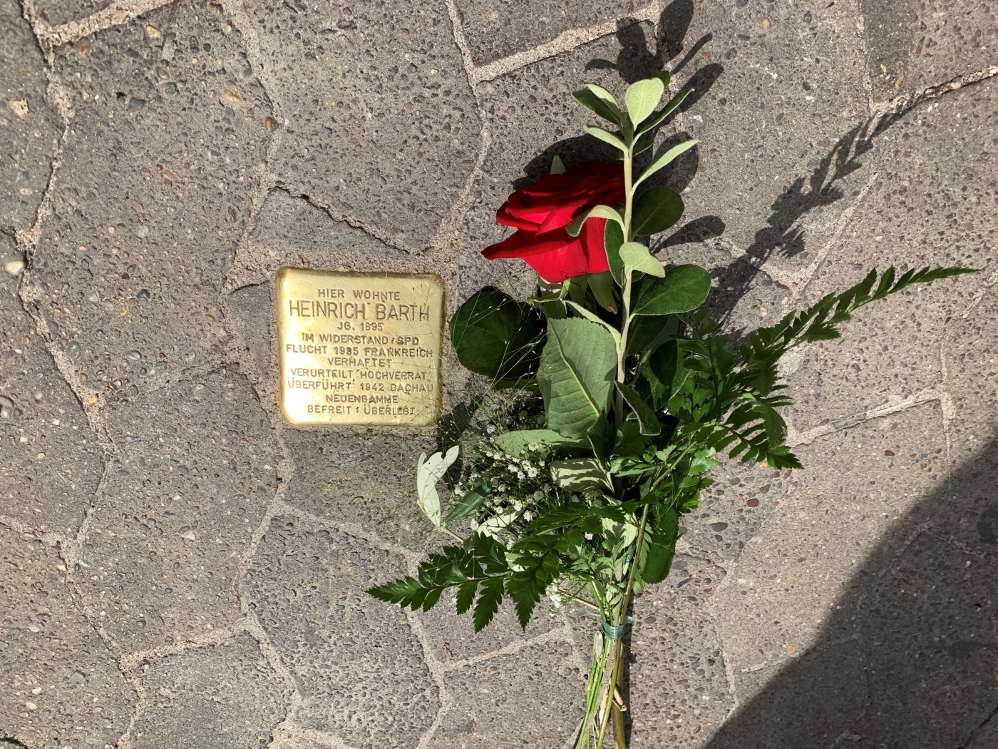 Sie erinnern an das Schicksal von Menschen, die von den Nationalsozialisten verfolgt, vertrieben und ermordet wurden. Die Gedenksteine würdigen Mathias Levy in der Hochstraße 147 und Heinrich Barth in der Bergstraße 27, die beide vor den Nationalsozialisten fliehen mussten.