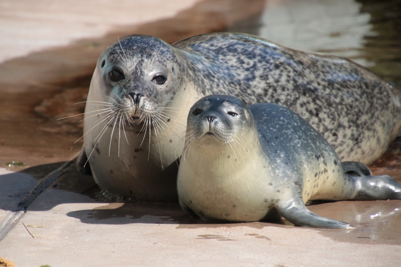 Das 18-jährige Seehundweibchen Louisa brachte Anfang Juli ein gesundes Seehundmädchen zur Welt. Für Louisa war es die vierte Geburt. Sie kümmert sich liebevoll um ihren Nachwuchs. Ihr Neugeborenes ist immer an ihrer Seite.