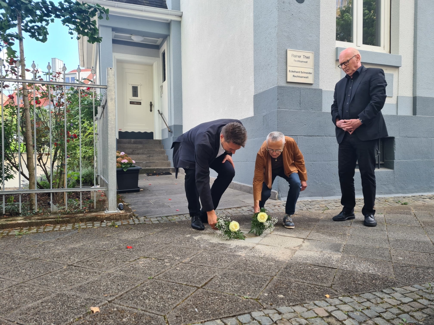Der Oberbürgermeister begrüßte an beiden Stationen die anwesenden Gäste und bedankte sich besonders bei den Angehörigen sowie bei Stadtverordnete Britta Blau, die die Patenschaft für den Stolperstein von Wilhelm Diesel übernommen hat. Außerdem waren unter anderem Vertreterinnen und Vertreter der Synagogengemeinde Saar und der Antisemitismusbeauftragte der Landesregierung anwesend.