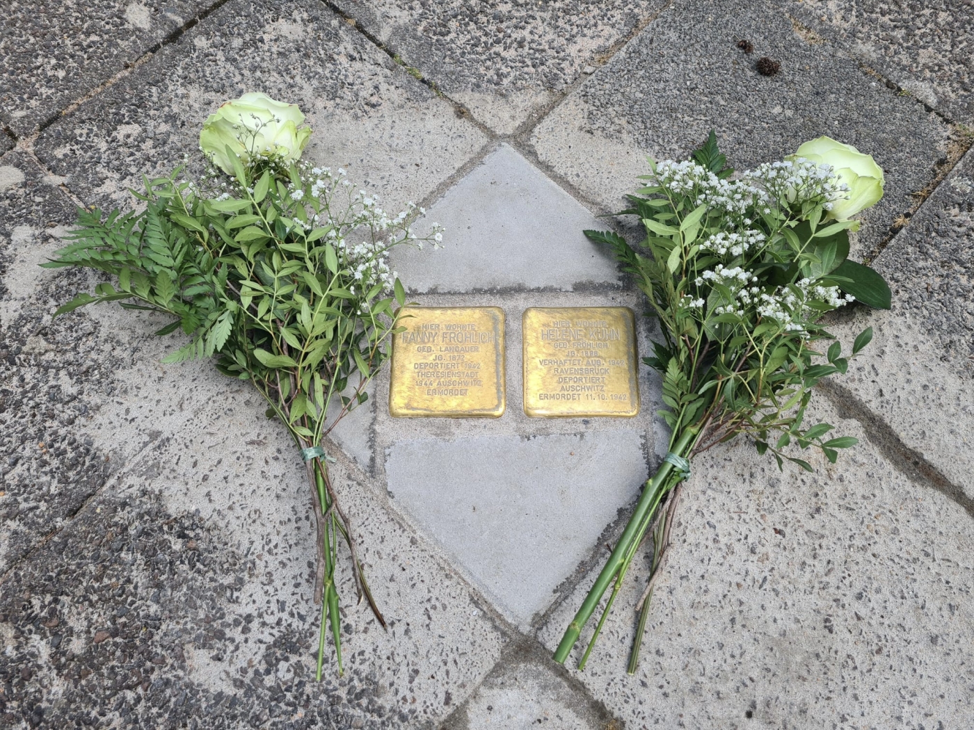 Helene Kuhn, geboren 1896 in Johannesburg, heiratete 1925 in Saarbrücken den Kaufmann Alfred Kuhn. Sie wurde von der Gestapo im Sommer 1942 verhaftet und kurz nach ihrer Ankunft im KZ Auschwitz ermordet. Ihre Mutter Fanny Fröhlich zog nach dem Tod ihres Mannes nach Saarbrücken. Sie konnte zunächst der Verhaftung entgehen, wurde aber im August 1942 festgenommen und im KZ Theresienstadt ermordet.