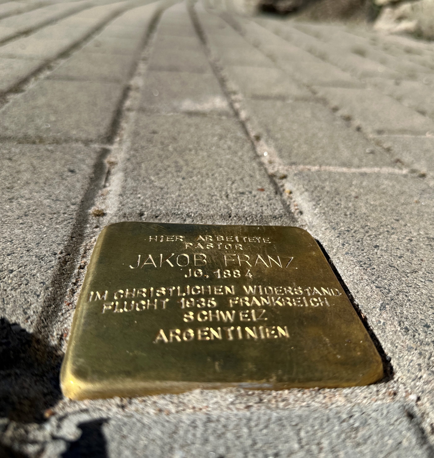 Stolpersteine erinnern an das Schicksal von Menschen, die von den Nationalsozialisten verfolgt, vertrieben oder ermordet wurden. Der aktuelle Gedenkstein würdigt Jakob Franz an der Katholischen Pfarrkirche St. Peter in Ensheim.