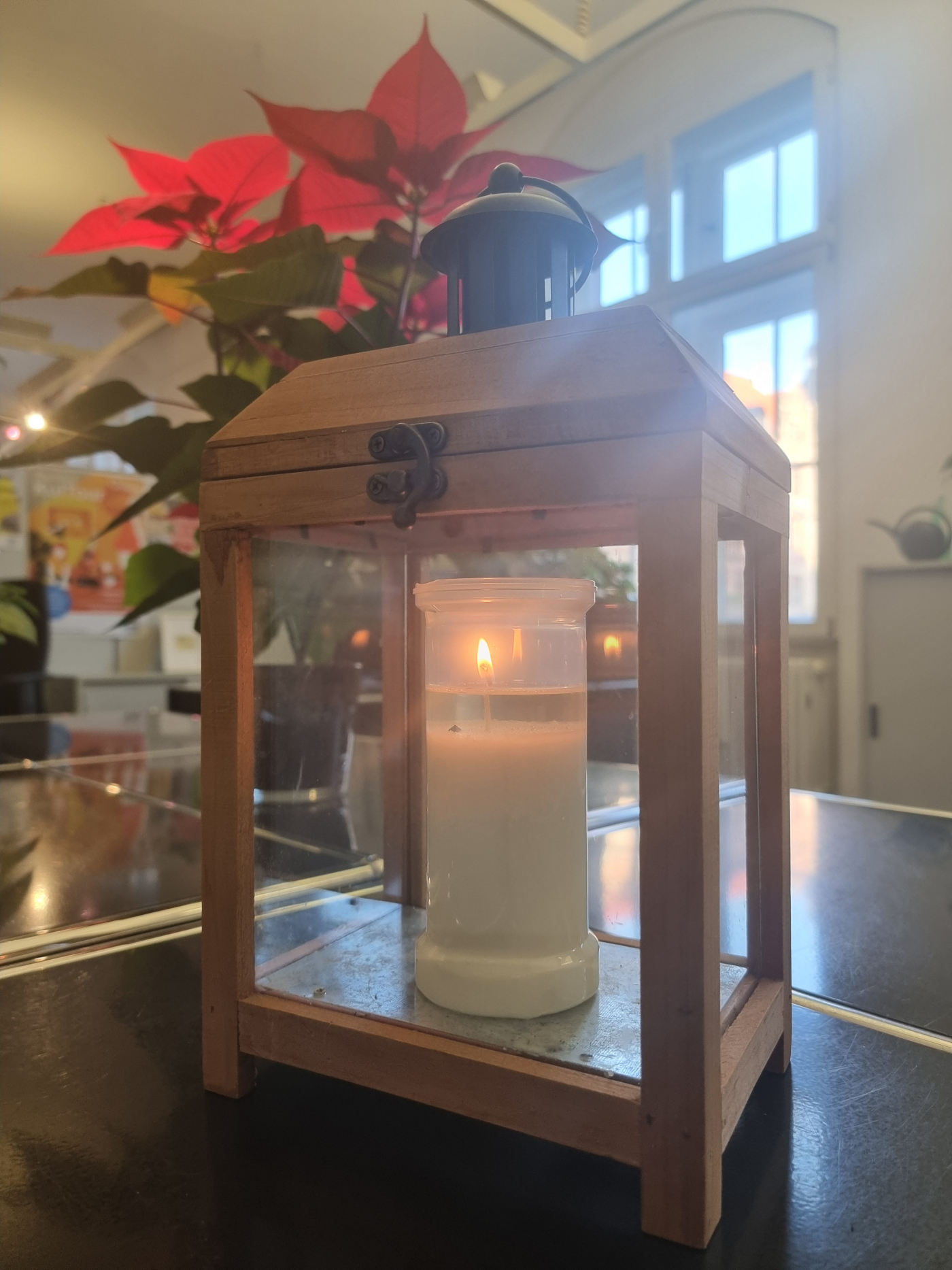 Friedenslicht auf der Infotheke im Rathaus St. Johann - LHS