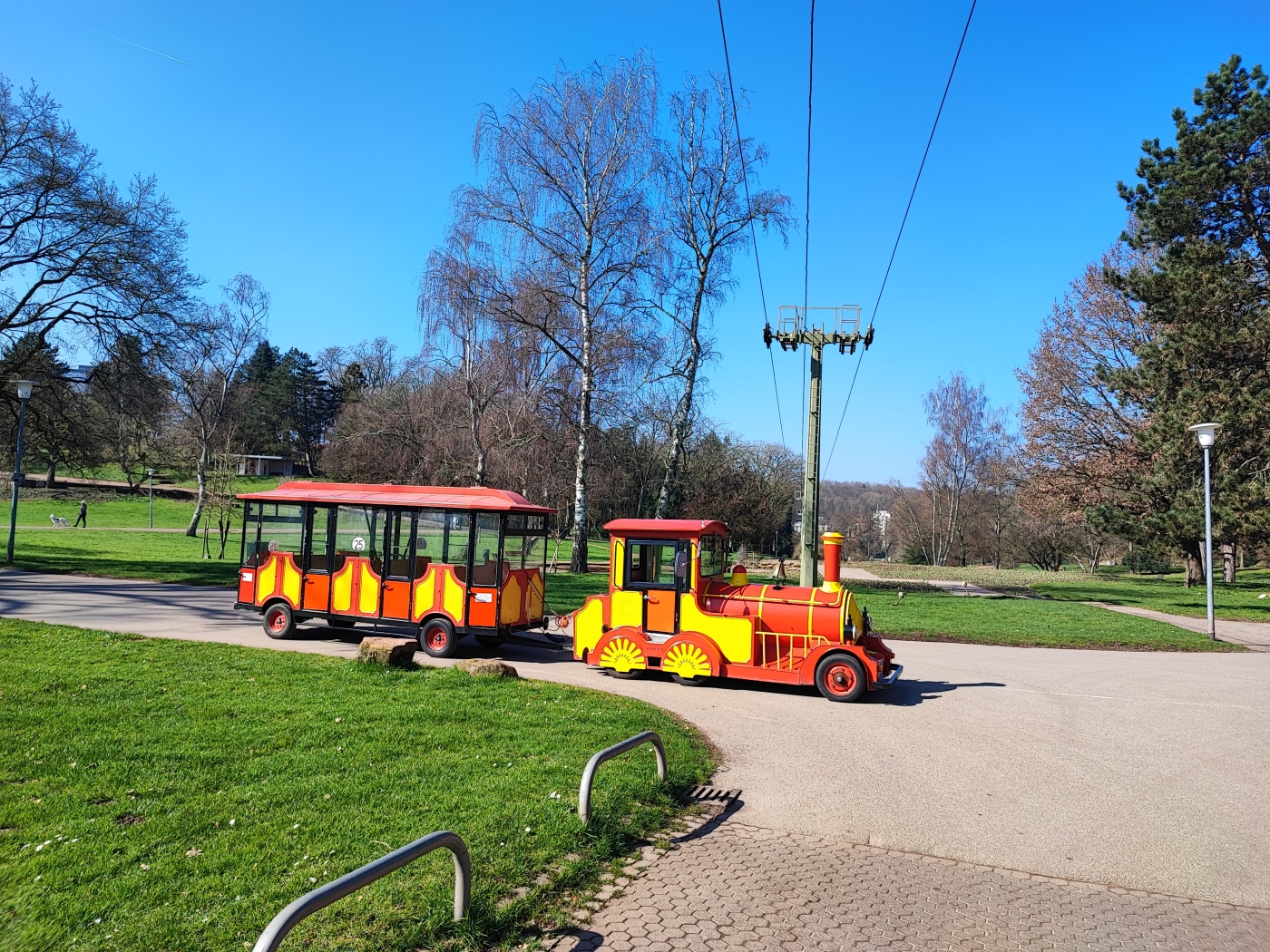Ab Ostermontag, 31. März, fährt eine Touristenbahn im Deutsch-Französischen Garten (DFG).
