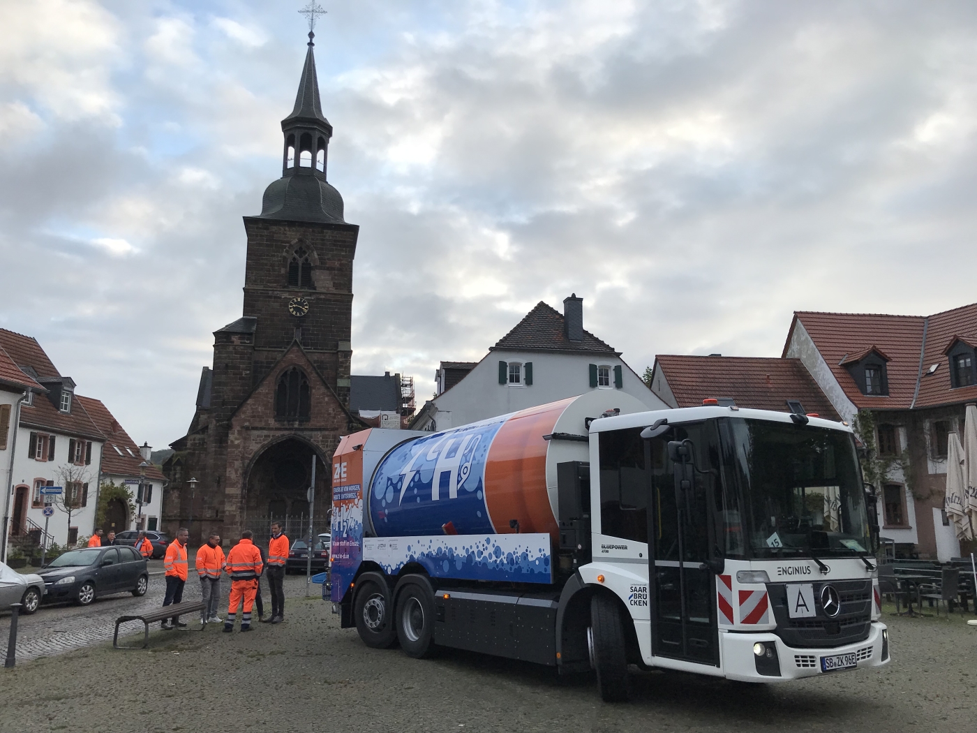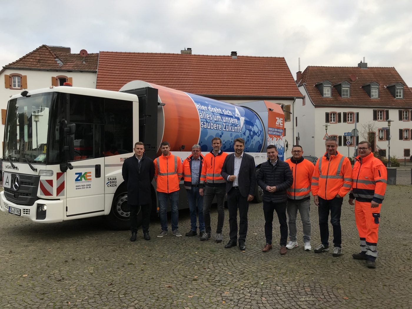 Der städtische Zentrale Kommunale Entsorgungsbetrieb (ZKE) hat seine Fahrzeugflotte klimafreundlich verstärkt. Am Freitag, 11. Oktober, war Oberbürgermeister Uwe Conradt bei der ersten Fahrt eines wasserstoffbetriebenen Müllsammelfahrzeugs auf dem St. Arnualer Markt dabei.