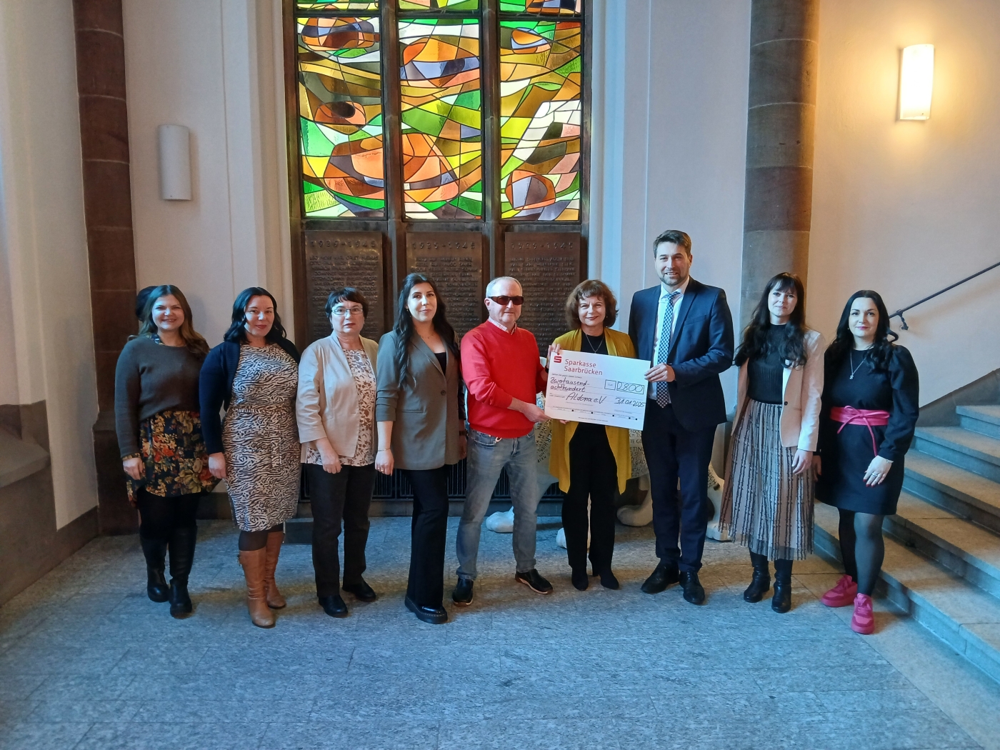 Oberbürgermeister Uwe Conradt hat den Scheck an Matthias Holzapfel, erster Vorsitzender, Barbara Filipak, Diplom-Pädagogin und fachliche Leitung bei ALDONA e.V., sowie an die Sozialarbeiterinnen Anastasija Eckhardt, Sabrina Burkhart, Lisa Klein, Antje Stolz und die Verwaltungsangestellte Kornelia Dziedzic übergeben.