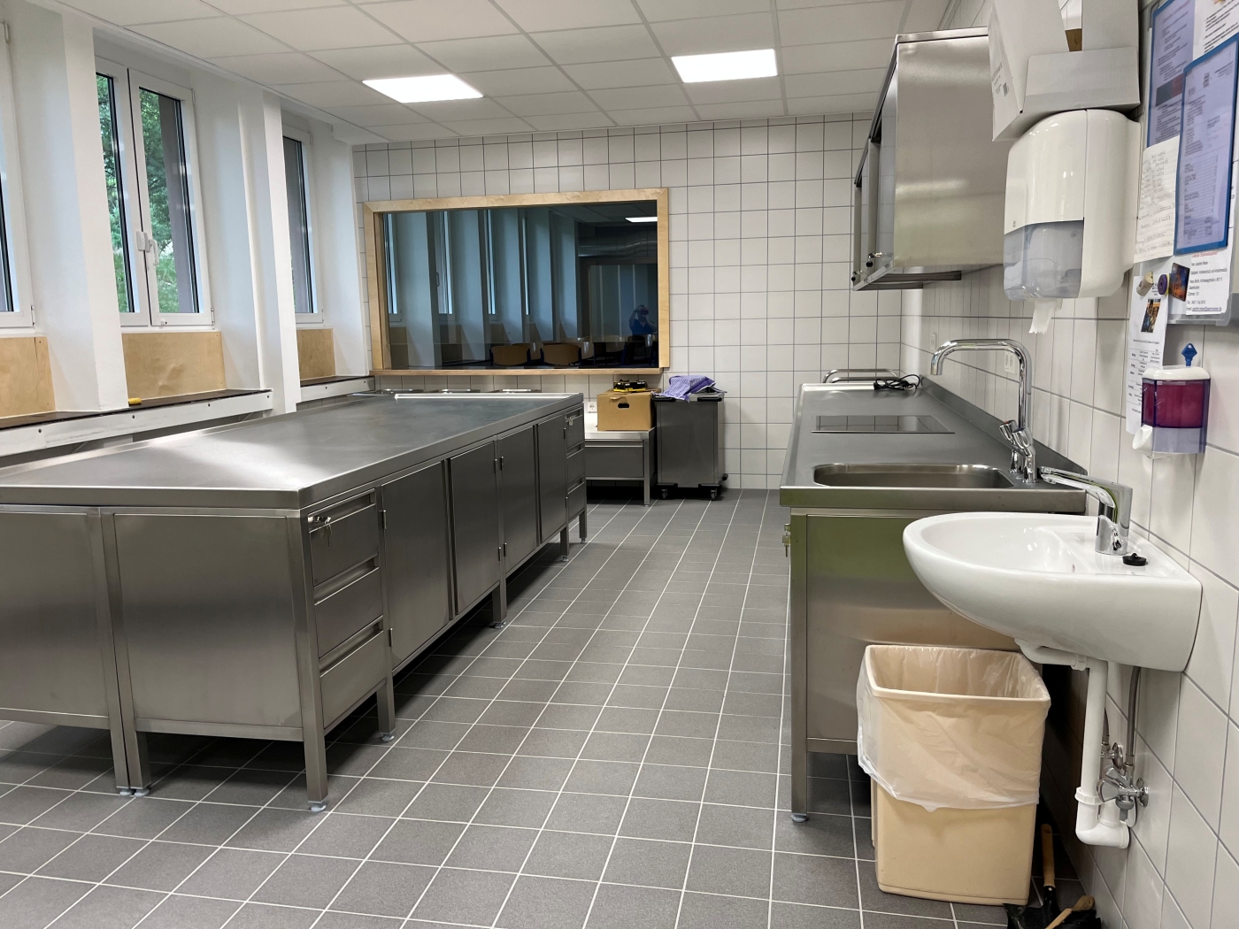 Umfangreiche Investitionen flossen in die Gebundene Ganztagsgrundschule Rastpfuhl. Dort entkernte und erneuerte die Landeshauptstadt die Küche, erneuerte die Speisesäle, baute eine Lüftungsanlage ein und stattete drei Flure mit neuen Brandschutzdecken, Beleuchtung und Türen aus. Dafür wurden rund 530.000 Euro ausgegeben.