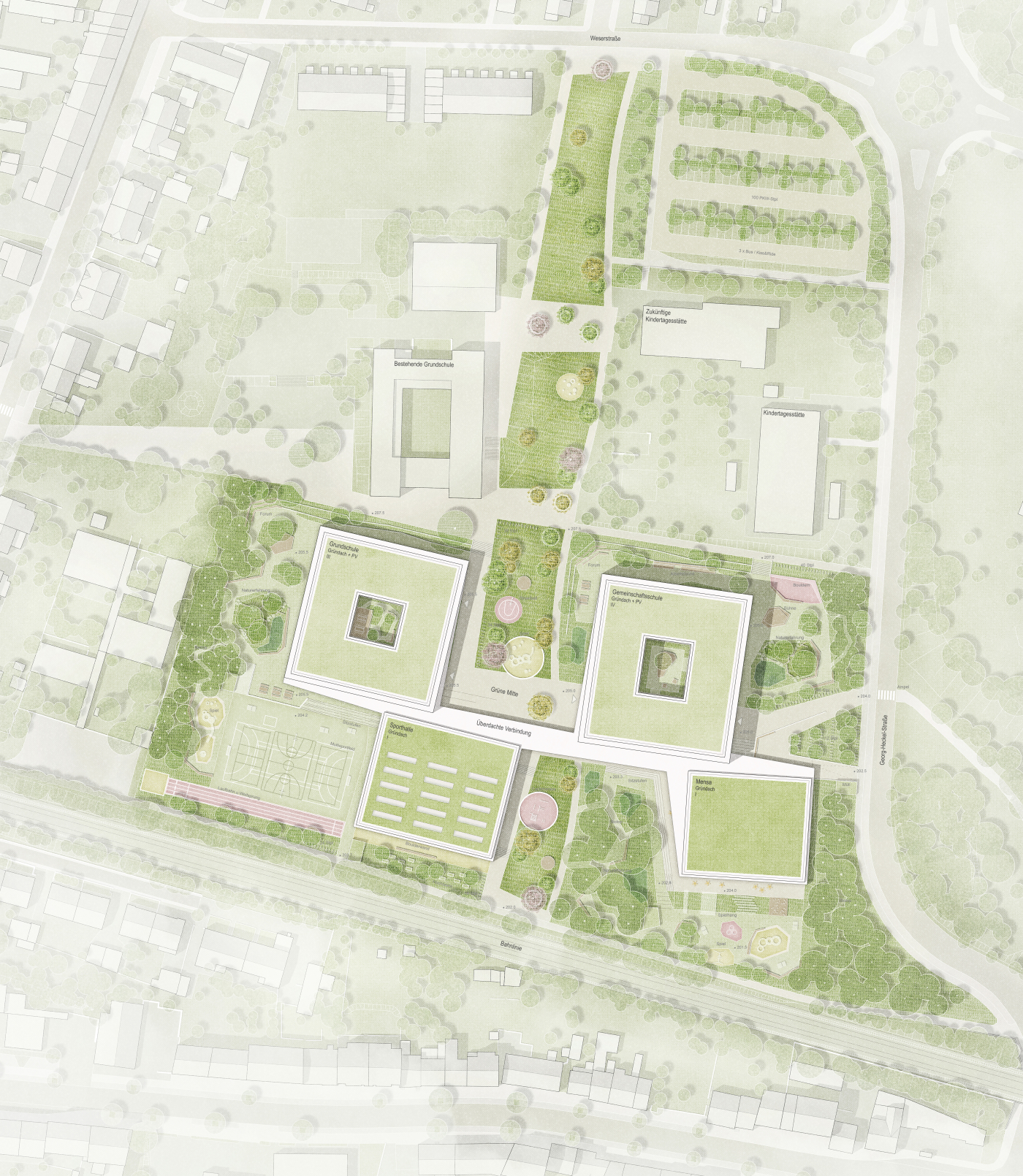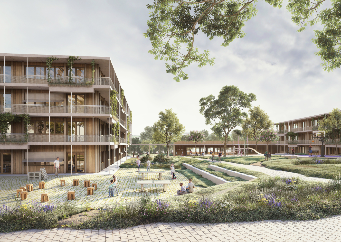 Siegerentwurf für den Bildungscampus West - KUBUS360 GmbH und Ackermann + Renner Architekten GmbH BDA, Stuttgart - BASE Landschaftsarchitekten PartGmbB, Berlin