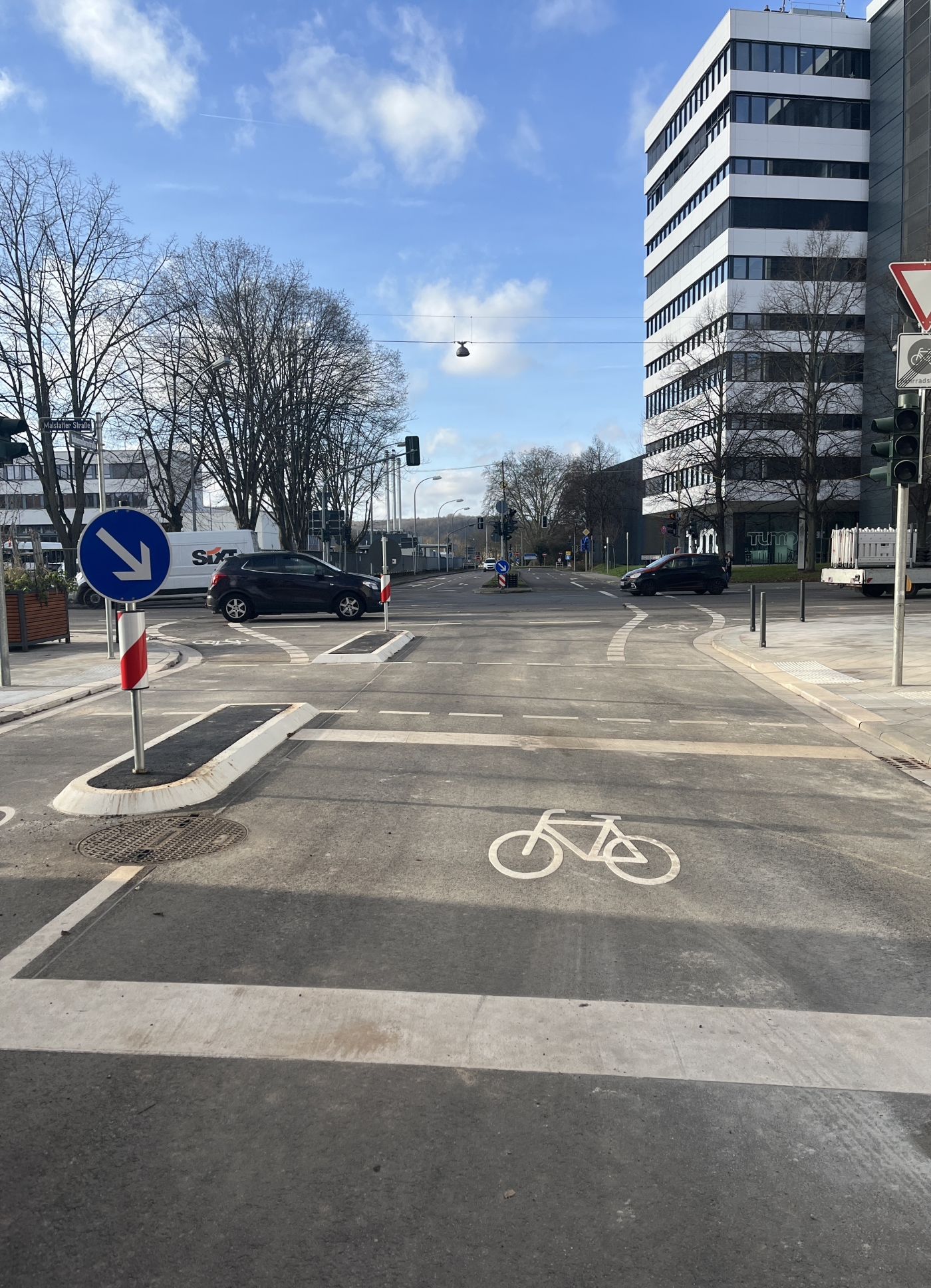 Witterungsbedingt konnten bisher lediglich noch nicht alle Radwegmarkierungen aufgebracht werden. Diese wird die Landeshauptstadt im Frühjahr 2026 ergänzen.