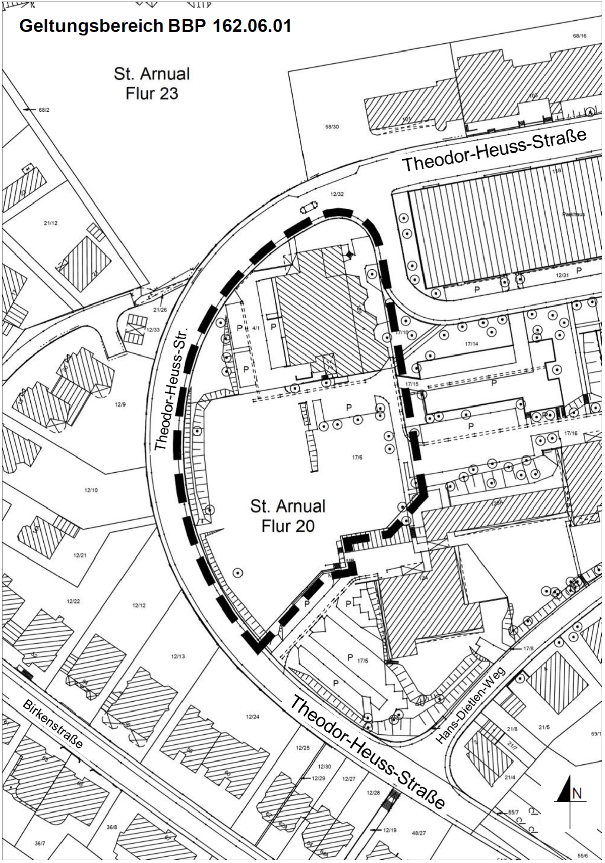 Die Abgrenzung des Bereichs des unwirksamen Bebauungsplans Nr. 162.06.01 ist dem Übersichtsplan zu entnehmen.