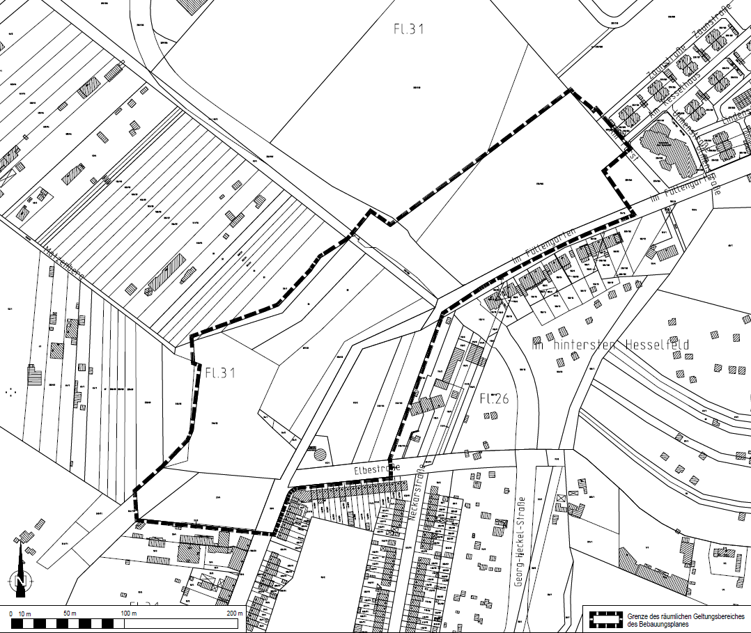 Der Geltungsbereich umfasst eine Fläche von ca. 6,1 ha. Gegenüber der Fassung des 1. Offenlagebeschlusses wurde im Westen ein Teil des Flurstücks 315/22 in den Geltungsbereich mit aufgenommen.