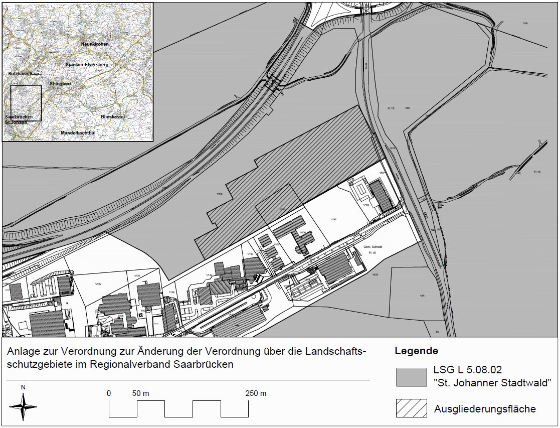 Das Ministerium für Umwelt, Klima, Mobilität, Agrar und Verbraucherschutz - Oberste Naturschutzbehörde - beabsichtigt auf Grund der §§ 20 und 26 des Bundesnaturschutzgesetzes vom 29. Juli 2009 (BGBl I. S. 2542), in Verbindung mit § 20 des Saarländischen Naturschutzgesetzes vom 05. April 2006 (Amtsbl. S. 726), jeweils in der derzeit gültigen Fassung, die Verordnung über die Landschaftsschutzgebiete im Stadtverband Saarbrücken vom 09. Juni 1976 (Amtsbl. S. 717), dahingehend zu ändern, dass folgende Flurstücke der Landeshauptstadt Saarbrücken, Gemarkung Scheidt, nicht mehr Bestandteil des Landschaftsschutzgebietes „St. Johanner Stadtwald“ (L 5.08.02) sind: