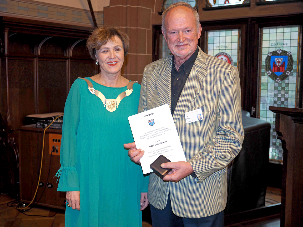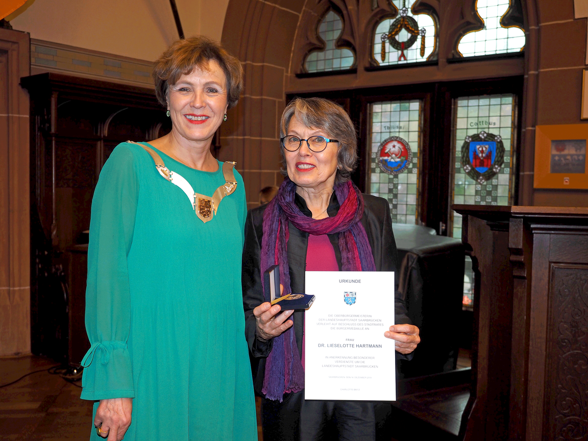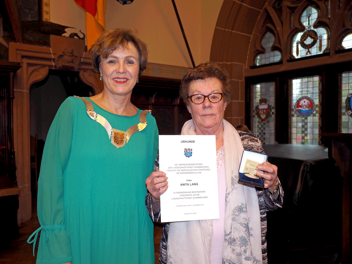 Die Saarbrücker Oberbürgermeisterin Charlotte Britz hat am Freitag, 14. Dezember, bei einer stimmungsvollen Feier im Rathausfestsaal die Bürgermedaille an Saarbrücker Bürgerinnen und Bürger verliehen. Die Bürgermedaille wird seit 2010 alle zwei Jahre verliehen.