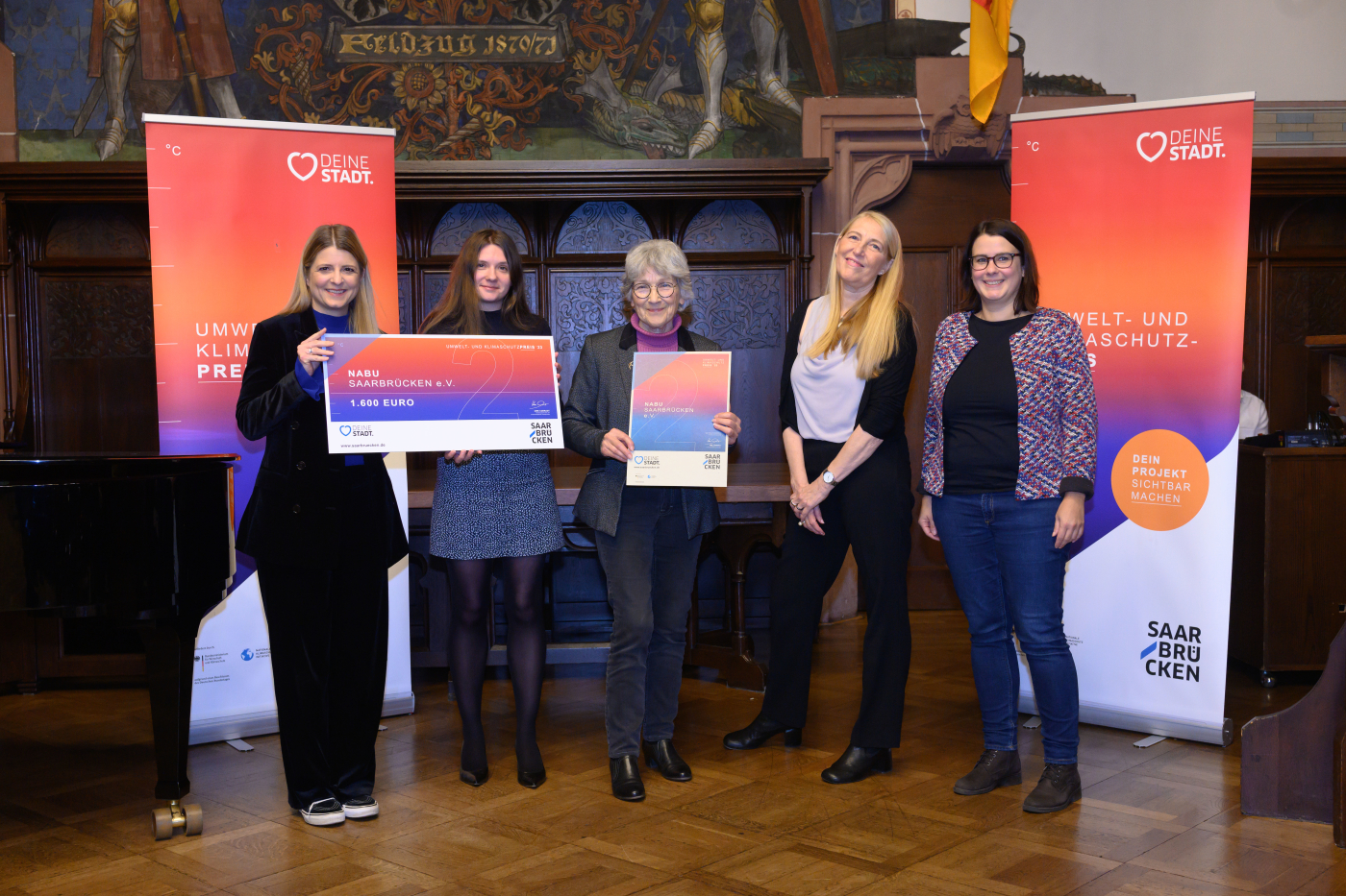 Durch die Arbeit im Bereich Natur- und Artenschutz konnte sich der NABU Saarbrücken e.V. den 2. Platz und damit ein Preisgeld von 1.600 Euro sichern. Die Anlage und Pflege von mehreren Blühflächen auf dem Gelände des Waldfriedhofes in Saarbrücken Burbach, Pflegemaßnahmen zur Erhaltung der Orchideenbestände in den St. Arnualer Wiesen sowie die Begleitung der Initialphase zum Urwald vor den Toren der Stadt sind nur eine Auswahl von Maßnahmen aus dem Tätigkeitsfeld des NABU Saarbrücken e.V.. Der Schutz von Amphibien während der Laichwanderzeit wird jährlich von ca. 120 ehrenamtlichen Helfern geplant und umgesetzt. Ungefähr 90 Vogelnistkästen und weitere Futterplätze werden gepflegt und betreut. Neben diesen Tätigkeiten berät der Verein auch Bürgerinnen und Bürgern zu den unterschiedlichsten Natur- und Umweltthemen.